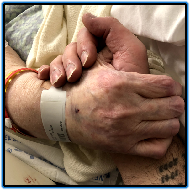 Then on Monday, she was worse, she was completely nonverbal, her eyes were closed and non-responsive and her blood levels started to show things were changing. Her kidneys were shutting down and her blood levels were all becoming a concern. We know my Moms a fighter so we ask to wait to make a decision until the next round of testing, she wasn't in pain but we just had to see a real drop to make sure. Well we got it, by just before 3:00 PM every test outcome showed a decline. After the one more test to see if she was rallying, we had to make the hard choice to move her to hospice to make her comfortable. At this point her body was failing and she was nonverbal, with no real communication response I can mention but it was clear she was there, listening and relieved. As we were waiting for the last test results when we were debating what to do, you could feel tension from her almost asking us to let her go. I can't explain it. There was definitely a consciousness. I can tell you too from praying the Holy Spirit was all around her, almost felt like an army of angels there, you could feel she was not worried in the least, no fear because she knew a room in our Fathers house had already been prepared for her and she was going home to be with the Lord and my Father. She has been suffering a lot longer than anyone knows because she kept a lot it of between her and Jesus, praying for the Rapture any time, well she gets to go first before the rest of us living believers!